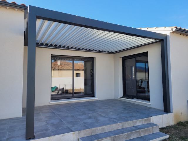 Offrez-vous une terrasse agréable en toute saison avec nos pergolas bioclimatiques sur mesure ! Grâce à leur structure en aluminium et leurs lames orientables, elles permettent de réguler l’ensoleillement et la ventilation, offrant un confort optimal selon la météo. Modernes et personnalisables, elles s’intègrent parfaitement à tous types d’habitations et transforment votre extérieur en véritable espace de vie.